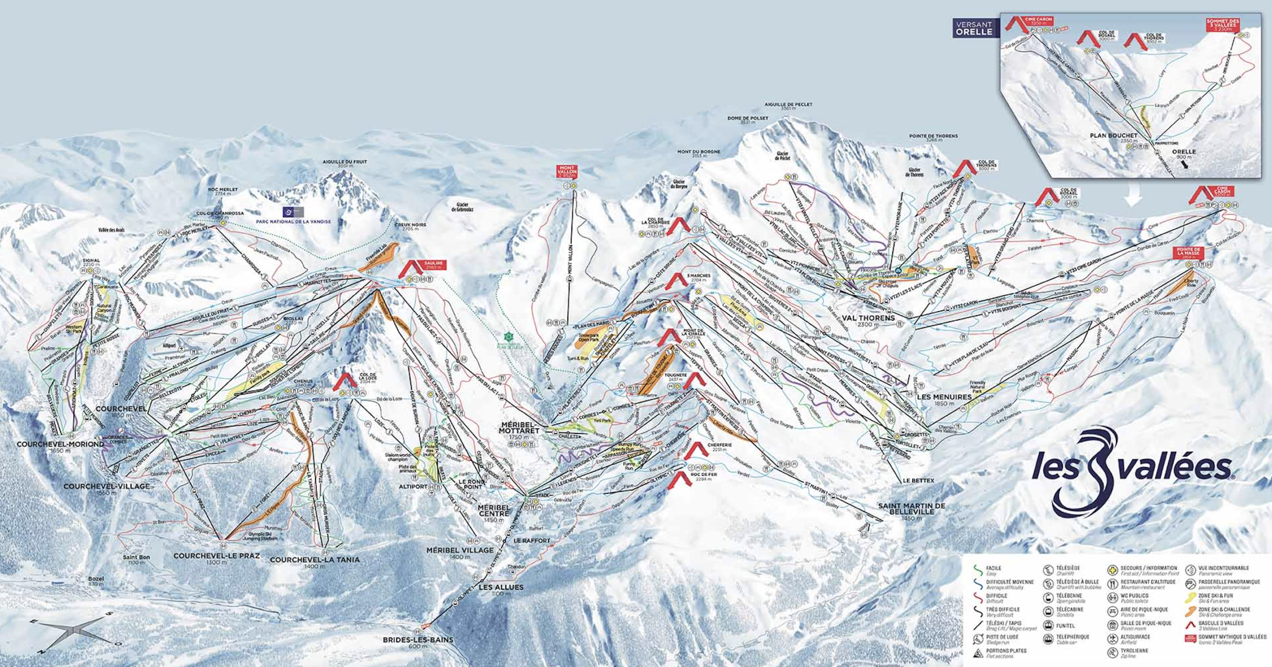 C’est la station de ski la plus haute d’Europe (2300m), réputée pour son enneigement exceptionnel, son accès direct au plus grand domaine skiable du monde. Les 3 Vallées, c’est le plus grand domaine skiable du monde, situé en Savoie, regroupant les vallées de Courchevel, Méribel (Allues) et Saint-Martin-de-Belleville (Belleville), avec 7 stations reliées skis aux pieds (Courchevel, Méribel, Brides-les-Bains, Les Menuires, Saint-Martin, Val Thorens, Orelle). Statistiquement, ce sont 600 km de pistes, 159 remontées mécaniques