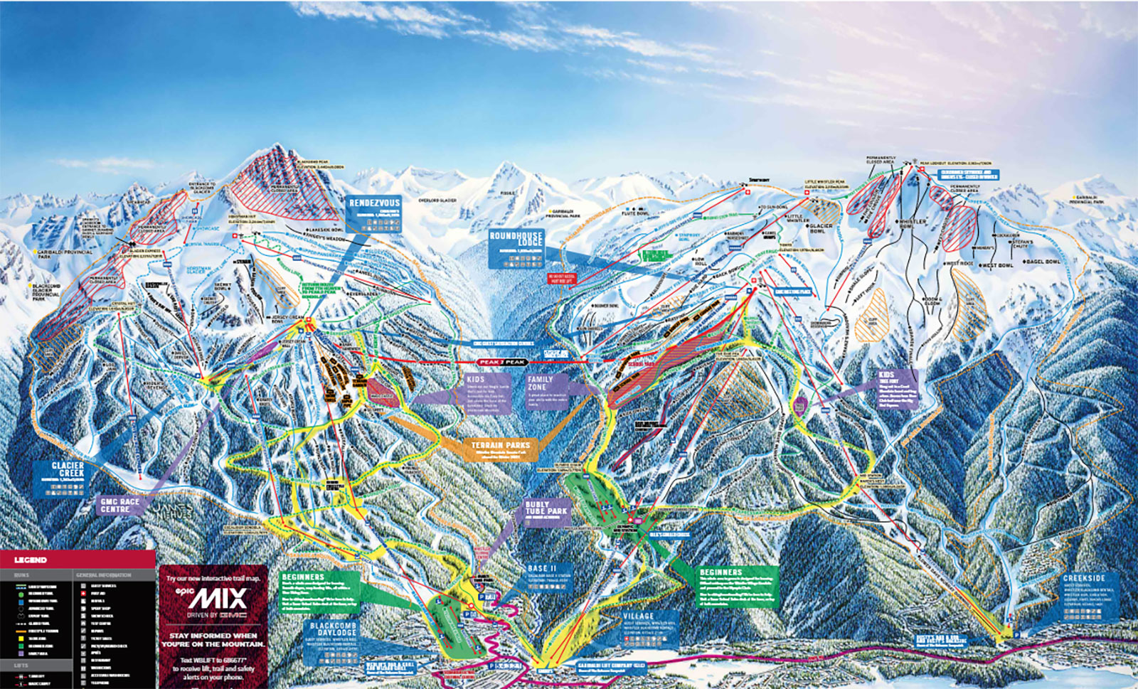 Les deux montagnes sont reliées par une télécabine qui détient un record du monde, la Peak-2-Peak, et sont desservies par l’un des plus importants réseaux de remontées mécaniques à grande vitesse. La saison de ski est aussi l’une des plus longues du continent. Tous les éléments essentiels sont donc réunis pour en faire un centre de villégiature classé no 1.